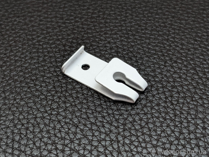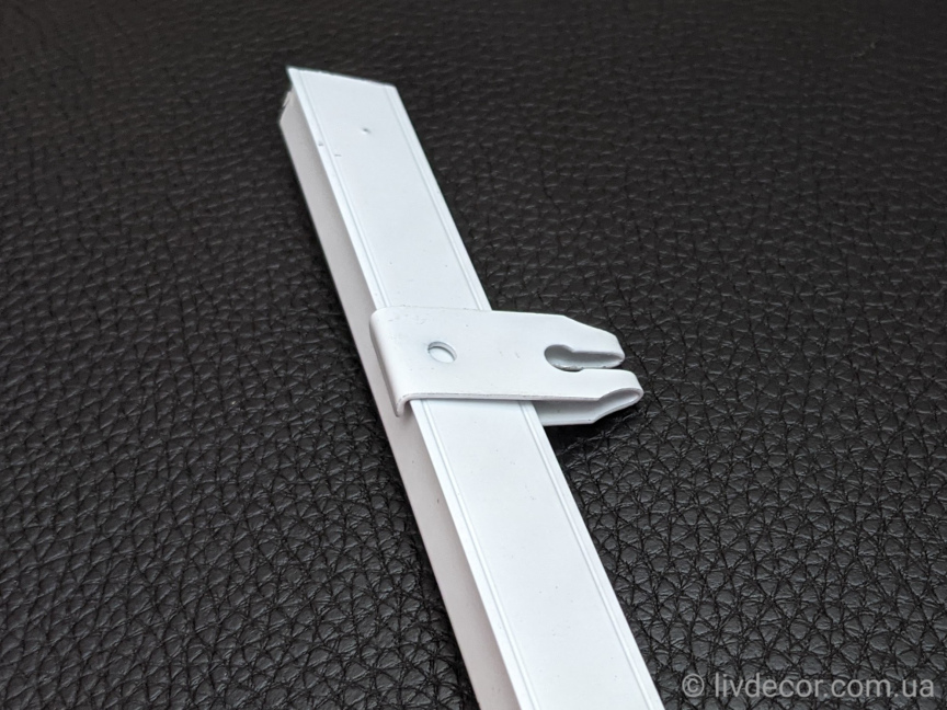 Кронштейн «Кліпса» KS – це одна з деталей, необхідних для кріплення алюмінієвого карниза KS. Це металева деталь товщиною 1мм, за допомогою якої можливий монтаж карниза на стелю (за допомогою шурупів). Або за допомогою гвинта кріпиться до стінового кронштейна. Кронштейн «Кліпса» досить легко кріпиться і зняти його також можна без зусиль при необхідності. Рекомендована відстань між «Кліпсами» не більше 50см.