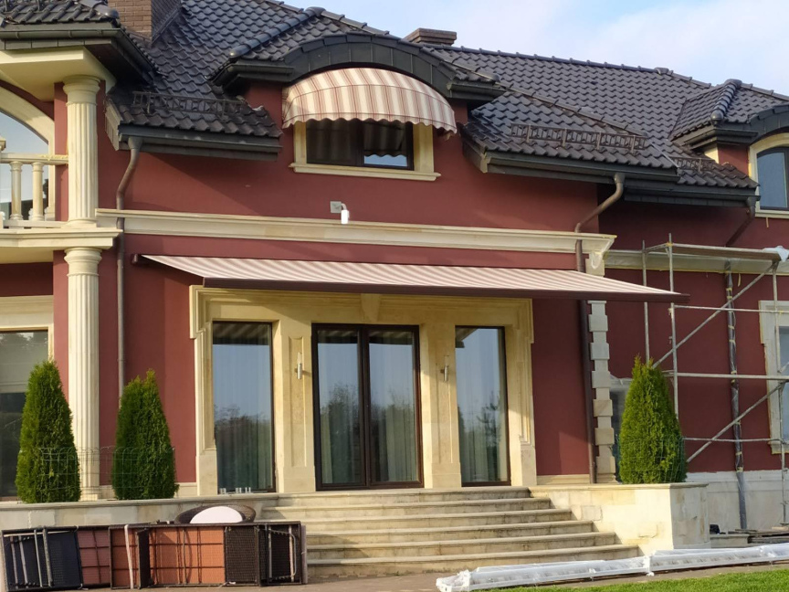 Для маркізи використовується акрилова тканина фірми Sattler, яка не пропускає воду та не вигорає під сонцем.