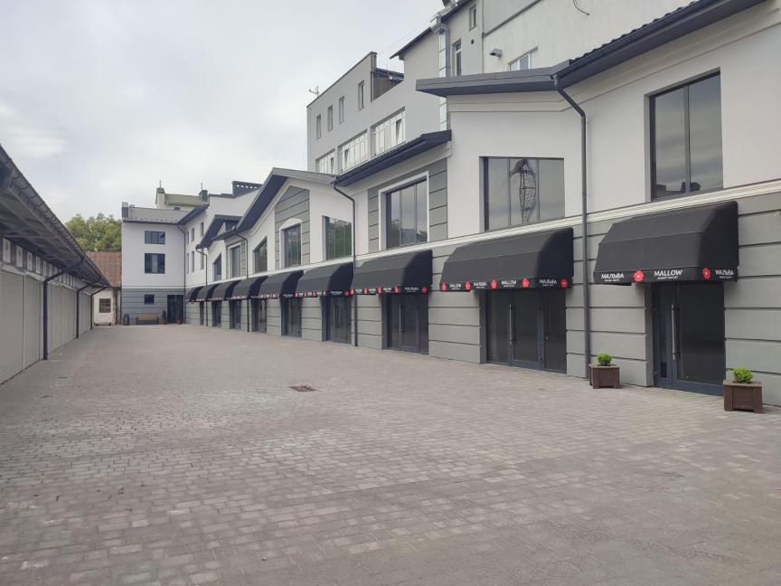 Прямокутна ковшова маркіза вдало поєднує в собі ефективний рекламоносій і захист від сонячних променів. Підходить для будь-яких закладів: ресторанів, барів, готелів чи приватних будинків.
